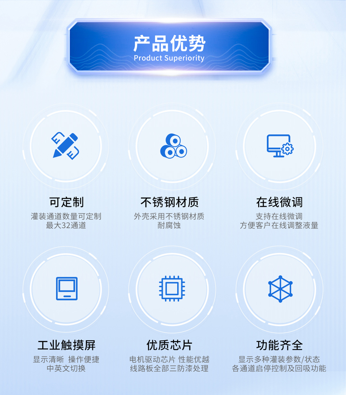 1.相位補償技術設計,脈動低灌裝精度高