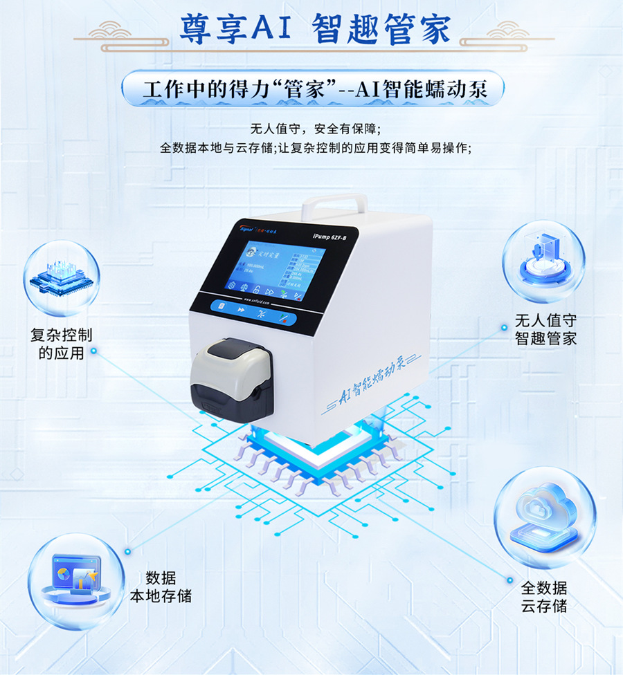 ? ? ? AI智能蠕動(dòng)泵可以將所有操作數(shù)據(jù)存儲(chǔ)在本地或云端,方便用戶查看和管理。通過(guò)AI技術(shù)的優(yōu)化和簡(jiǎn)化,蠕動(dòng)泵的控制和操作變得更加簡(jiǎn)單易懂。