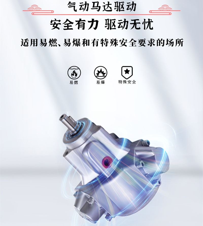 防爆氣動齒輪泵的發熱量低,溫升小。當系統過載時,電機會停止或打滑,而氣動執行元件并不會發熱,這對保護設備和工作環境的安全非常重要。