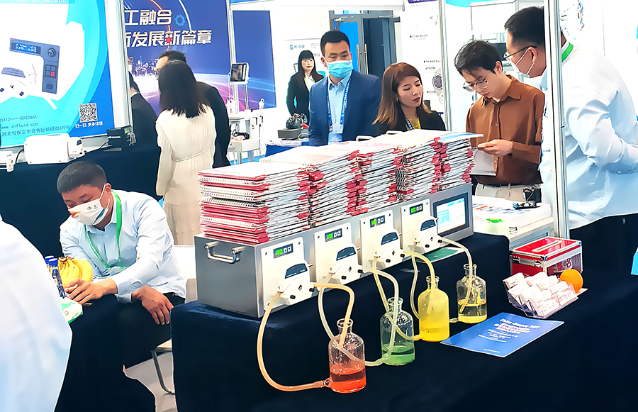 中國(guó)醫(yī)學(xué)裝備大會(huì)暨醫(yī)學(xué)裝備展覽會(huì)已經(jīng)成為業(yè)界融合科技、產(chǎn)業(yè)和臨床應(yīng)用的學(xué)術(shù)與技術(shù)交流的平臺(tái),也是我國(guó)醫(yī)學(xué)裝備領(lǐng)域“政、產(chǎn)、學(xué)、研、用”結(jié)合緊密、影響廣泛的行業(yè)盛會(huì)!在此盛會(huì)現(xiàn)場(chǎng)保定思諾的同事對(duì)智能觸摸屏蠕動(dòng)泵、多通道灌裝系統(tǒng)蠕動(dòng)泵、OEM蠕動(dòng)泵等產(chǎn)品的詳細(xì)解說(shuō)吸引了眾多專業(yè)觀眾駐足觀摩,現(xiàn)場(chǎng)人潮涌動(dòng),火爆非常,匯聚了外眾多客戶。